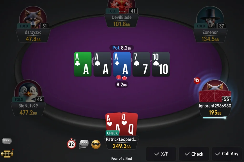 Four of KindA♥-A♠-A♣-A♦-10♥