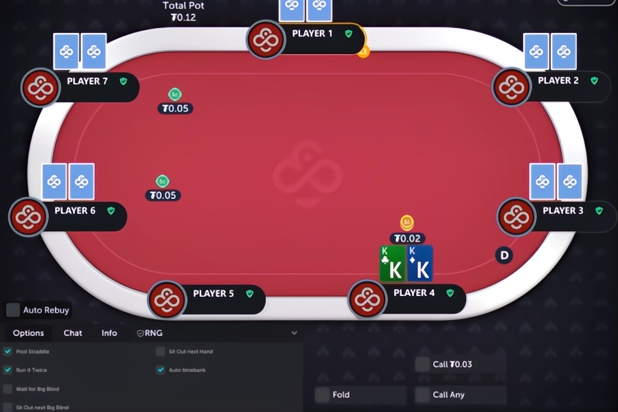 Image: Player for has Pocket Kings in the Small Blind position.