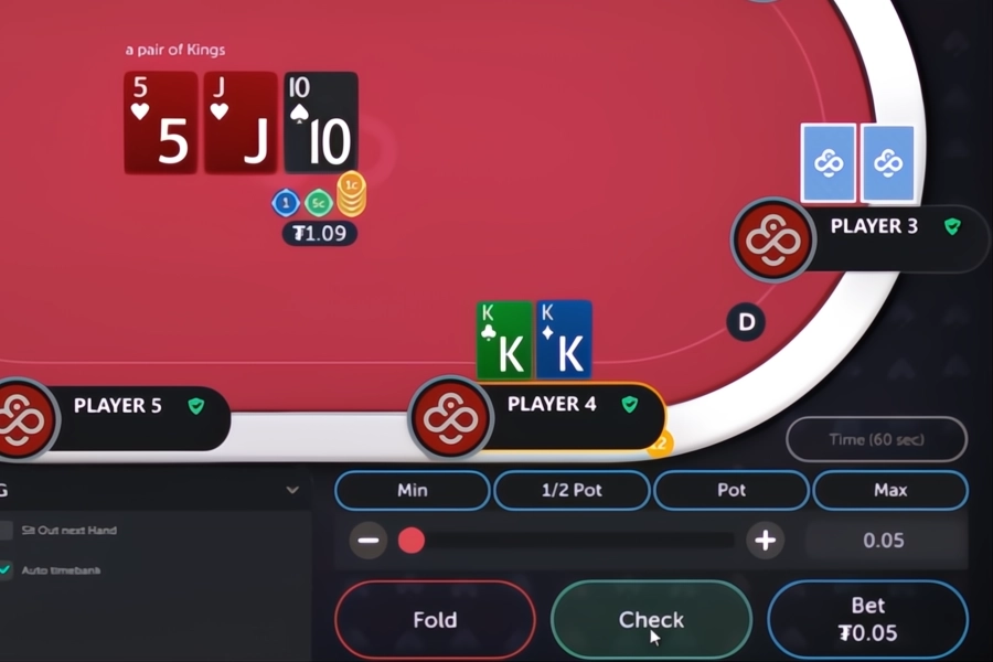 2. Choose to Check, Call, Fold, or Raise