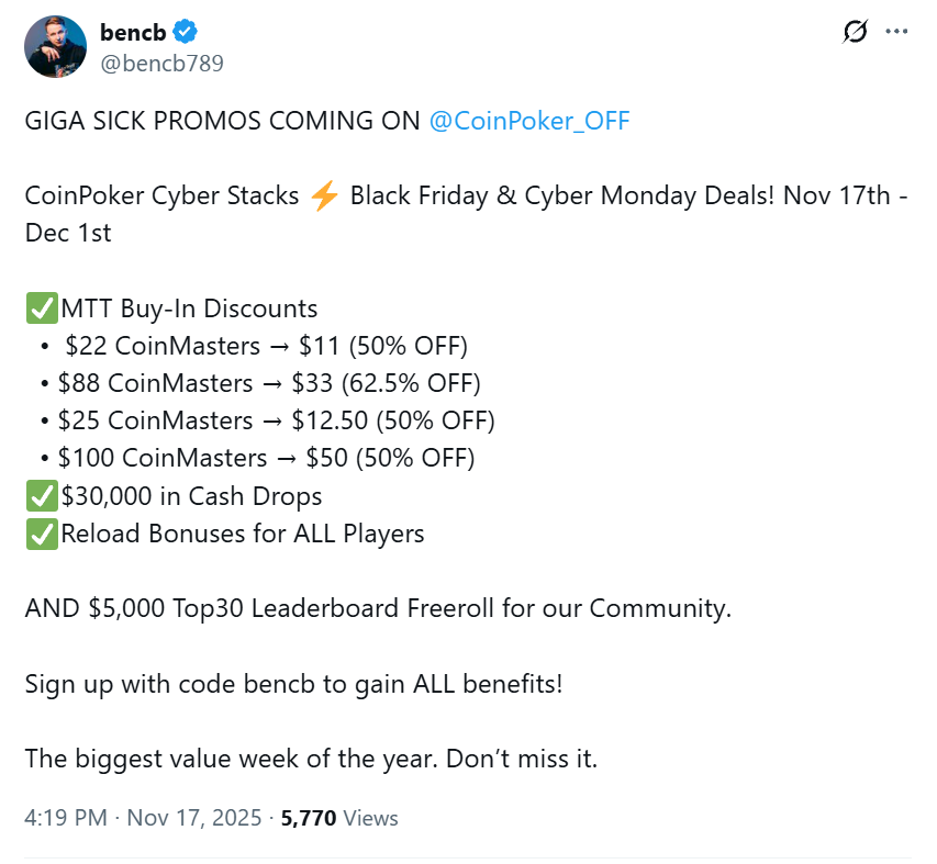 CoinPoker でビートを見逃すことはありません。 フォローし、視聴し、アクションに参加してください: