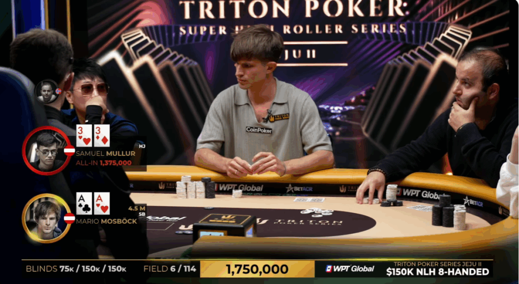 CoinPoker 홍보대사 Mario Mosböck 준우승 $3,067,941에 $150,000 Triton 제주