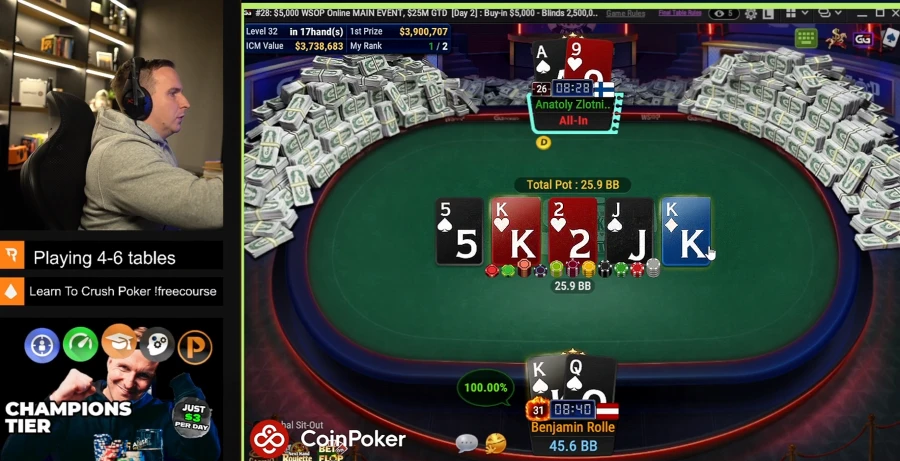CoinPoker의 BeatBEN 프로모션에서 Bencb는 $39의 참가비 $5K 추가 토너먼트에서 무작위로 6명의 상대를 선택한 다음 $5K SNG에서 그들과 대결합니다.