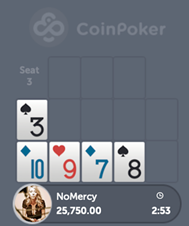 Gutshot Straight에 대한 마지막 말은 무승부입니다. 가능한 한 이러한 것을 피해야 합니다. 4-5-6-8-Q와 같은 핸드라도 당신이 첫 번째 위치에 있다면 것샷으로 플레이해서는 안 됩니다.