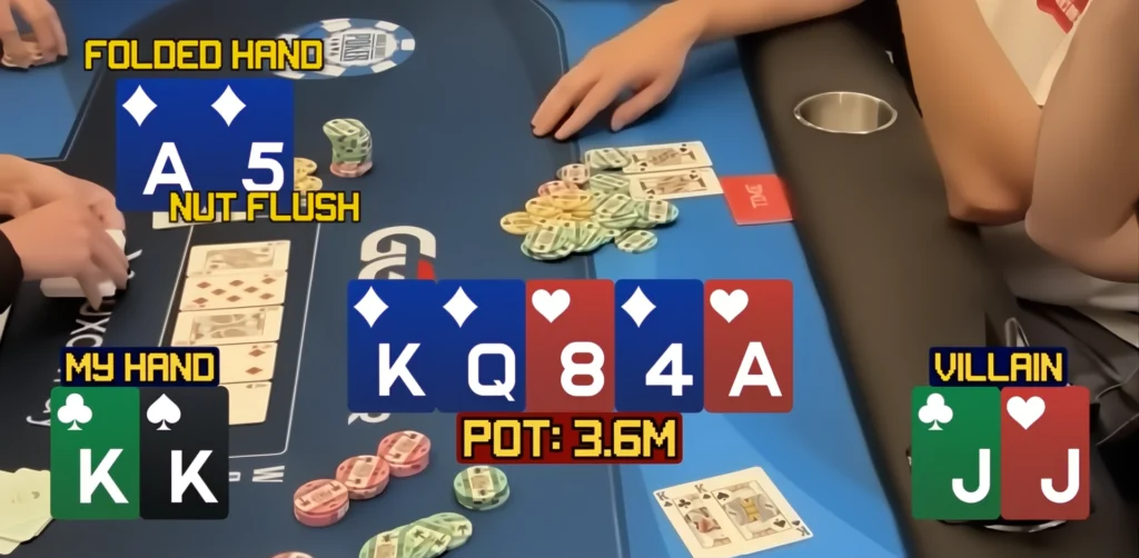 Caputo folded A♦5♦, which would have given him a flush to win the hand.