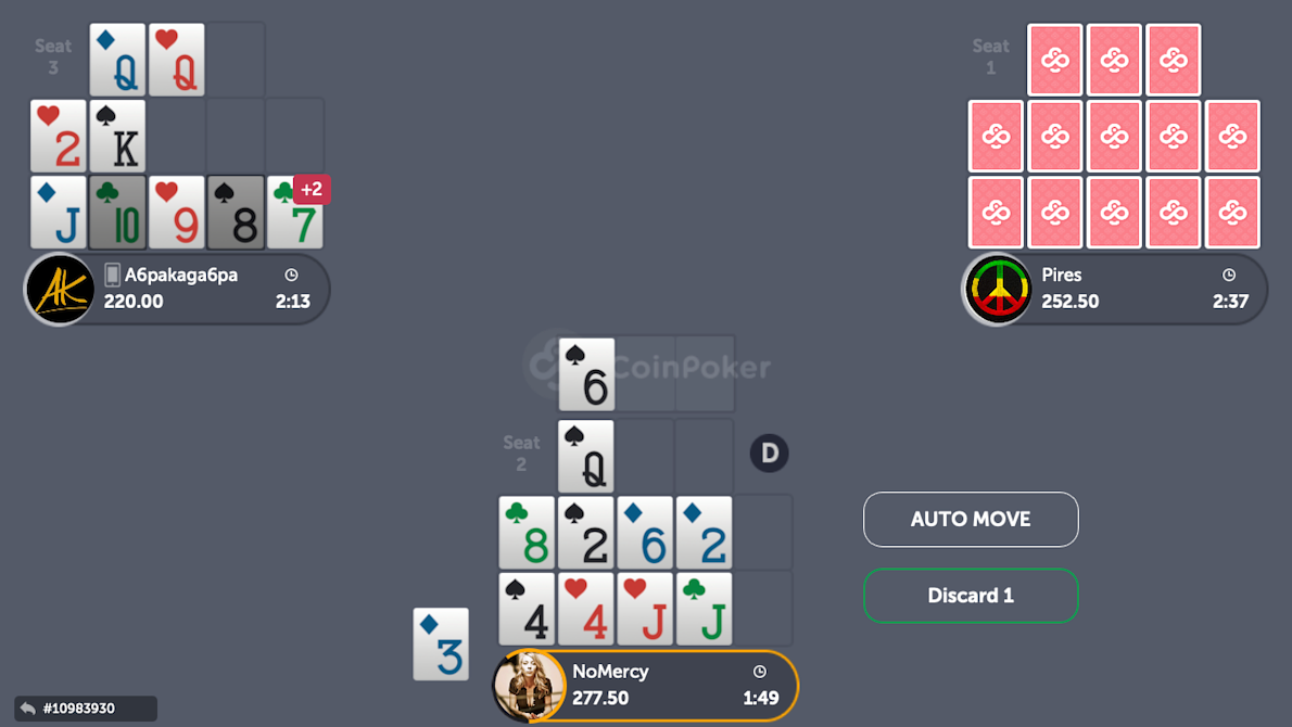 A special thanks to A6pakaga6pa and Pires for this great low stakes’ OFC cash games session in CoinPoker.