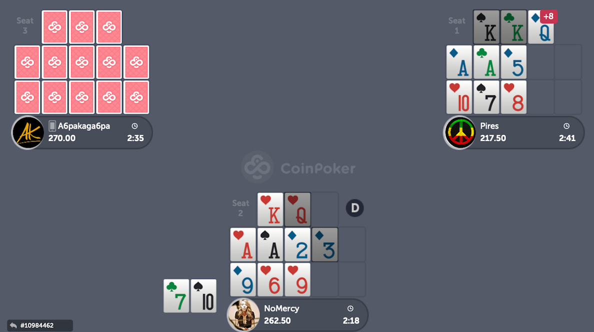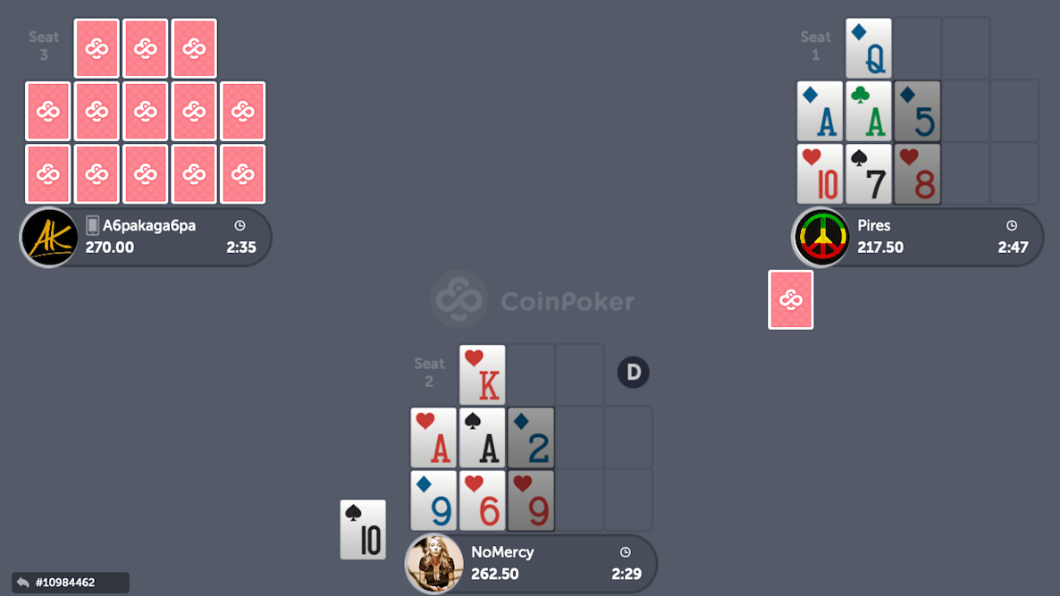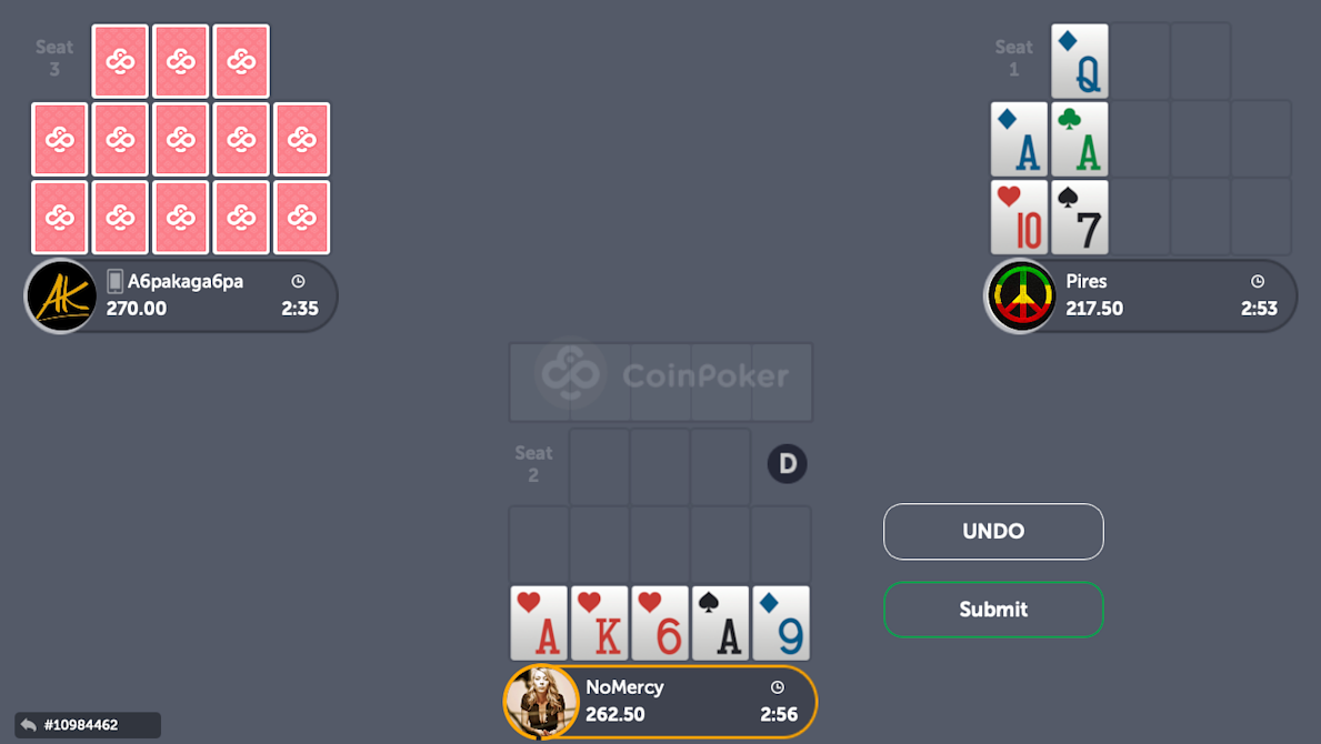Let’s go over an analysis of a hand that presented itself to me recently while playing on CoinPoker. I received these five cards to start my board: