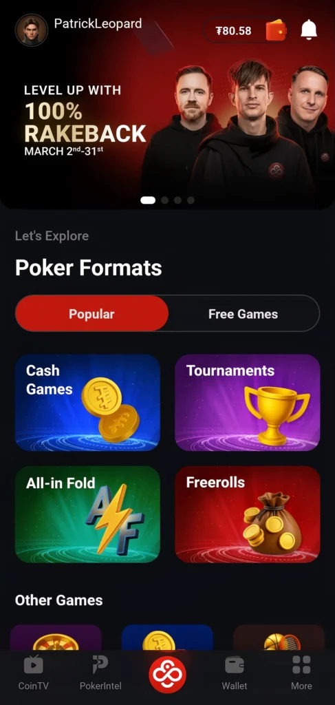 返回 CoinPoker,登入,並開始瀏覽我們的遊戲。